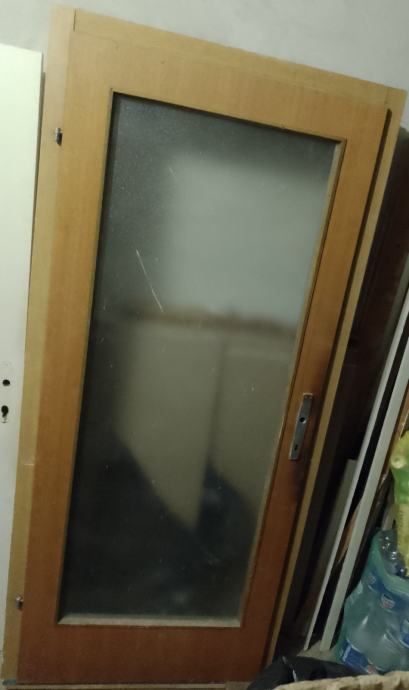 Sobna drvena vrata s staklom i okvirom, dimenzije krila su V - 200 x Š - 85, a zidarskog otvora je V - 201,5 x Š - 86,5 , prodajem za 55,00 € !!