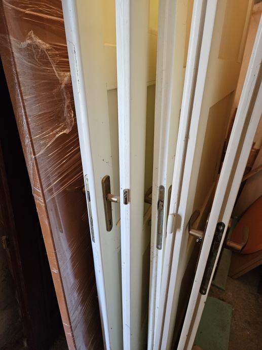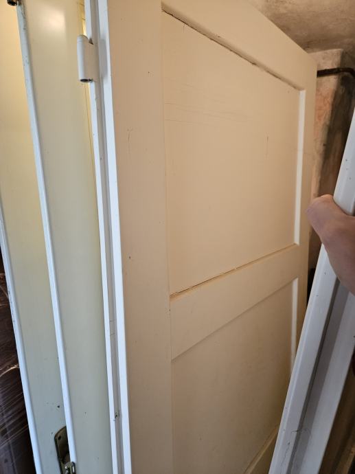 Vrata su rabljena, od punog drva, lakirana. Nemaju oštećenja osim boje koja je popucala na više mjesta - stanje vidljivo na slici. Za kupovinu više komada moguć dogovor oko cijene.