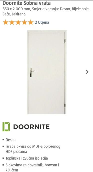 Prodajem sobna vrata (lijeva) s pripadajućim štokom (10 cm), dimenzija 85x200 cm.