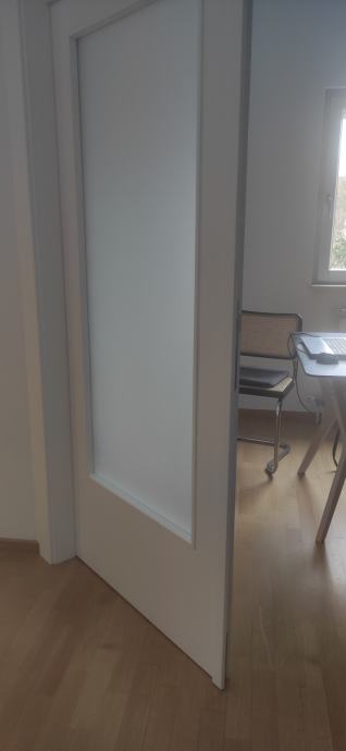 Vrata su kao na slici. Dvokrilna sa staklom. Glavno i pomoćno krilo. Sačuvana te u odličnom stanju. Teska su dosta. Puno drvo. Mislim da je to MDF vrhunske kvalitete u bijeloj boji.