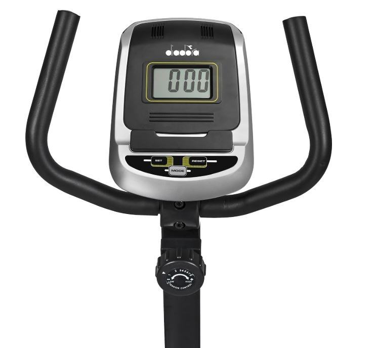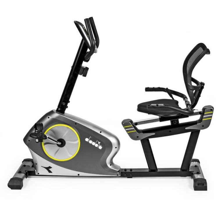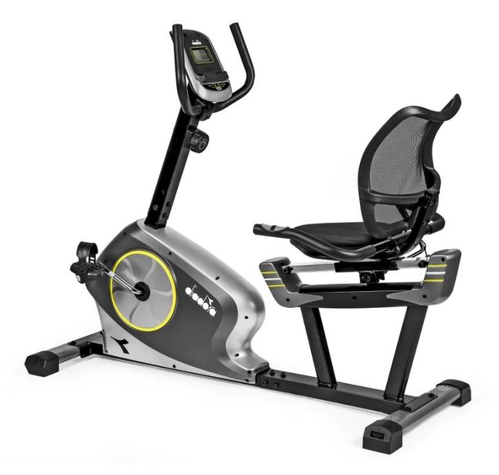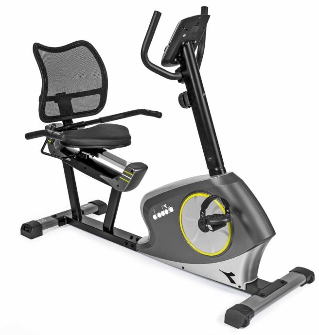 Diadora ležeći sobni bicikl nudi mogućnost vježbanja u udobnijem položaju, gdje se možemo nasloniti leđima na naslon, pa se leđni i trbušni mišići više odmaraju, što vožnju bicikla čini ugodnijom i opuštenijom. Napor se može podesiti na 8 razina otpora. Sjedalo je horizontalno podesivo, a ručka je također podesiva, što osigurava da uvijek imate optimalan položaj tijekom vježbanja.LCD zaslon računala prikazuje bitne funkcije za pravilno vježbanje: proteklo vrijeme, udaljenost, potrošene kalorije, brzinu i otkucaje srca. Otkucaji srca mjere se senzorima pulsa na ruci, ugrađenima u ručku. Opremljen je transportnim kotačima za praktično spremanje nakon upotrebe.Otpor: MagnetskiPodešavanje otpora: 8 razinaPodešavanje sjedala: horizontalnoPodešavanje upravljača: DaJednostavan pristup: DaLCD računalo: 8 x 4 cmDržač za tablet i telefon: DaFunkcije računala: Vrijeme, udaljenost, brzina, kalorije, otkucaji srcaRučni monitor otkucaja srca: DaTransportni kotači: DaNožice za niveliranje baze: DaMaksimalna težina korisnika: 120 kgDimenzije proizvoda: 145 x 77 x 113 cmDimenzije pakiranja: 90 x 38 x 65 cmBruto težina: 38 kgNeto težina: 33 kg