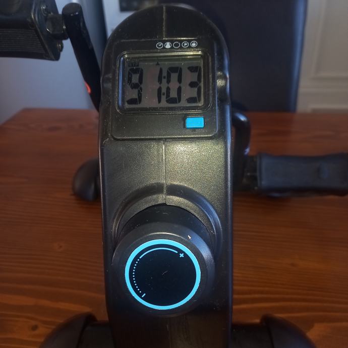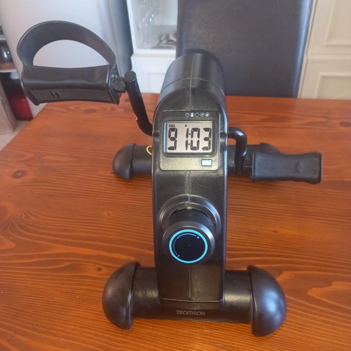 Mini sobni bicikl pogodan za vježbanje nogu i ruku, digitalni displej i brojač okretaja i vremena, stabilan i nažalost vrhunski očuvan...gotovo nekorišten....šteta da skuplja prašinu.