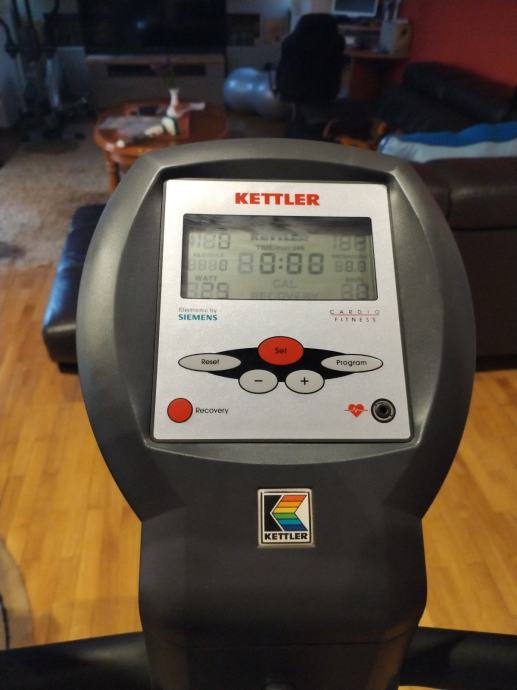 Prodajem Kettler AX1 sobni bicikl. Idealan za trening kod kuće, bez obzira na vremenske uvjete! Sobni bicikl je u dobrom stanju i radi besprijekorno. Zaslon prikazuje sve važne podatke poput vremena, udaljenosti, potrošenih kalorija i otkucaja srca (uključen je prijemnik za monitor otkucaja srca). Dostupni su razni programi treninga. Savršen za održavanje forme tijekom cijele zime! Pogodan za sve razine kondicije.Zaslon konzole: LCD visoke rezolucije, grafički prikaz profila opterećenja, performansi u vatima, brzine, brzine pedaliranja, prijeđene udaljenosti po sesiji, ukupne prijeđene udaljenosti, potrošnje energije, pulsa, pulsa pri vježbanju s postotnim prikazom postavljene gornje granice.Mjerenje otkucaja srca: Elektroničko mjerenje pulsa opcionalno s kopčom za uho ili kardio-pulsnim setom Indukcijski sustav kočnice 10 kg zaštitna peta Transportni kotačići za jednostavan transport Napajanje: Mrežno napajanje 230 V za računalo za vježbanje i sustav kočenja (napajanje uključeno) Sustav otpora:Elektromagnetska kočnica na vrtložne struje (indukcijski kočni sustav) s elektroničkim upravljanjem neovisnim o brzini u koracima od 5 W od 25-400 W. Maksimalna težina korisnika: 130 kg .