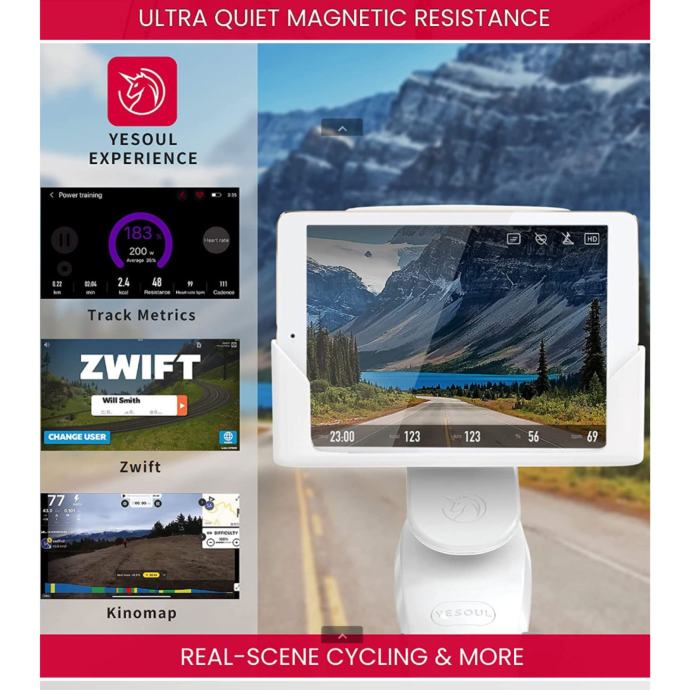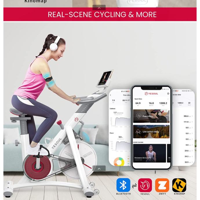 Sobni bicikl također ima integriran Bluetooth 4.0 koji omogućuje povezivanje s vašim pametnim telefonom ili tabletom. Putem namjenske aplikacije Yesoul Fitness možete jednostavno pratiti svoj napredak u stvarnom vremenu, pregledati svoje ključne statistike kao što su: brzina, kadenca, udaljenost, potrošene kalorije, otkucaji srca ili razina otpora i trajanje treninga. Također možete spremiti svoje statistike ili ih podijeliti sa svojim prijateljima.