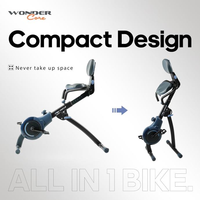 Revolucionarni 4-u-1 sobni bicikl Flex Cycle tvrtke Wondercore.Pretvara se iz ležećeg bicikla u standardni uspravni bicikl, Core focus brdski bicikl za vježbanje i core extreme cycle bicikl u nekoliko sekundi, zahvaljujući svojoj patentiranoj tehnologiji jednostavnog okretanja.