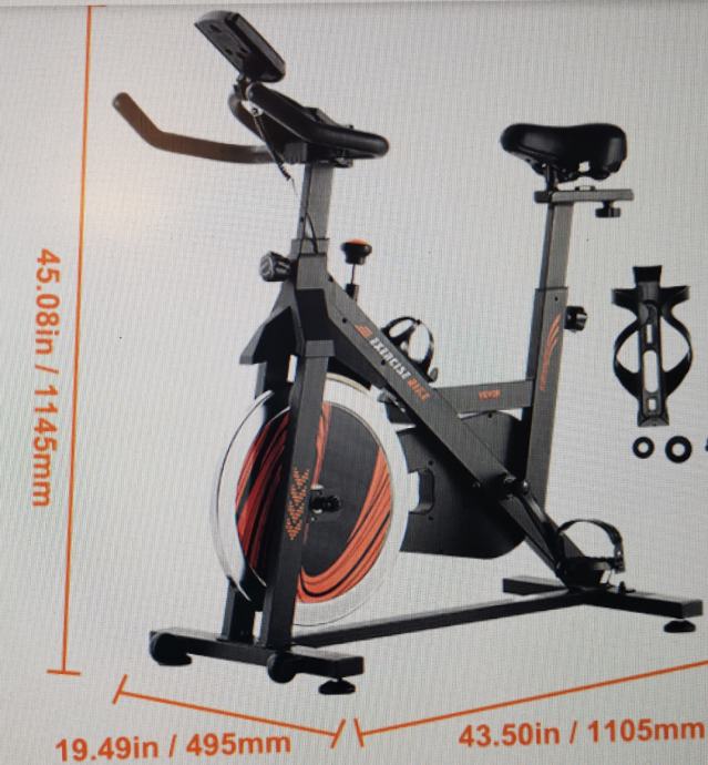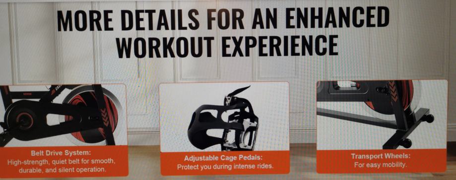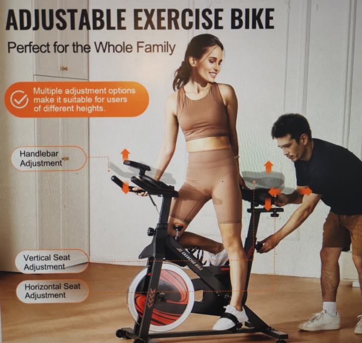 01. Ovaj sobni bicikl je potpuno nov i nekoristen i za osobe je do 150 kg i do 210 cm visine. Ovo je tzv. Spinning bicikl. Ima zamašnjak cak od 15 kg, zatim trokutasti celicni okvir, tzv. „I“ bazu, 24 brzine, razne funcije na ekranu, super udobno sjedalo sa memo pjenom, amortizerima i ventilacijom koje se moze pomjerati gore-dolje i naprijed-natrag, mogucnost spustanja i podizanja upravljaca (guvernala), kotacice za lakse pomicanje po prostoriji….