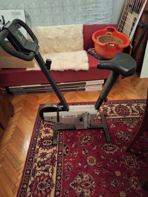 Prodajem rabljeni sobni bicikl s ugrađenim računalom koje mjeri vrijeme, udaljenost i potrošene kalorije. Konstrukcija je stabilna i čvrsta, idealna za svakodnevno vježbanje kod kuće. Bicikl je u dobrom stanju unatoč korištenju i savršen je za održavanje kondicije bez obzira na vremenske uvjete.