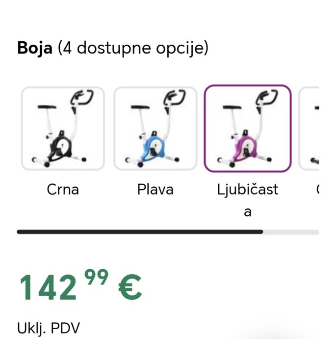 Ovaj bicikl za vježbanje treba sastaviti. Napomena: Ovo je sobni bicikl za početnike. Ima jednostavan mehanizam otpora bez zamašnjaka. Bicikl nije prikladan za visoke ljude: prije kupnje, pažljivo provjerite veličinu.