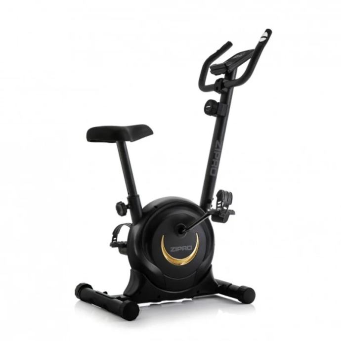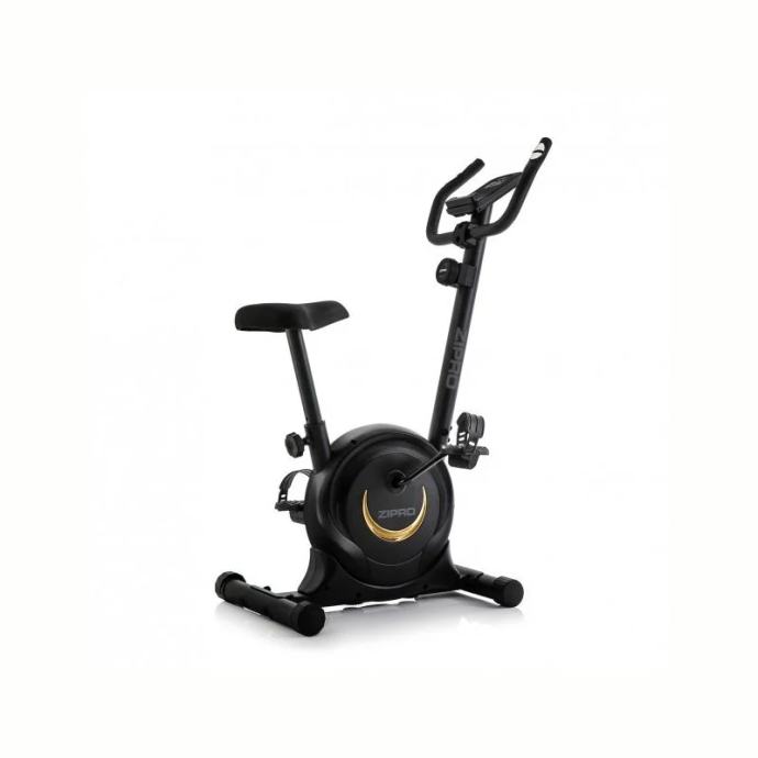 Sobni bicikl Zipro One S Gold kompaktan je bicikl za kućni trening čvrste i stabilne strukture. Pažljivo izrađeno crno mat kućište s visokosjajnim elementima, zlatnim detaljima i crnim vijcima daje mu elegantan i moderan izgled. Ovaj bicikl pružit će vam ne samo ugodan trening, već će postati i dizajnerski ukras vašeg doma.