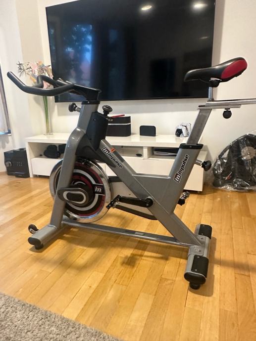 Prodajem rabljeni spinning bicikl Impulse PS300, korišten isključivo za kućnu upotrebu i u odličnom stanju. Bicikl ima vrlo kvalitetnu i izdržljivu konstrukciju, težinu od 61 kg i zamašnjak od 20 kg, idealan za intenzivne treninge i sportsku pripremu. Sjedalo i volan su podesivi, prilagođeni za različite visine i dužine ekstremiteta, a gumom presvučeni rukohvati pružaju dodatnu udobnost. Bicikl je težak, ali zahvaljujući kotačićima lako se pomiče. Maksimalna nosivost korisnika je 150 kg.
