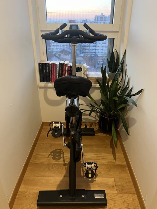 Opremljen je LCD konzolom koja prikazuje sve ključne podatke treninga, uključujući udaljenost, brzinu, kalorije, otkucaje srca i RPM. Zahvaljujući bežičnom prijemniku pulsa i uključenom prsnom pojasu, ovaj bicikl je idealan za kontrolu intenziteta vježbanja.