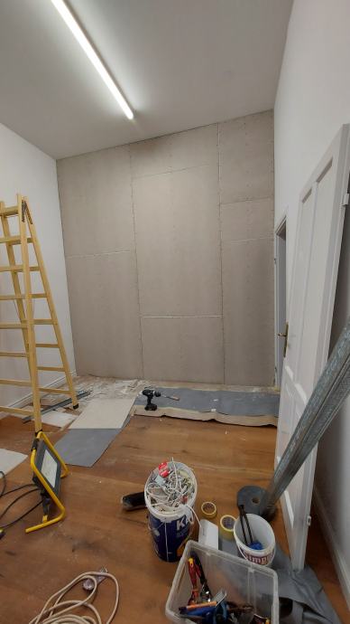 - Izrada obloge od GK ploča: lijepljenjem, na ALU podkonstrukciju,
