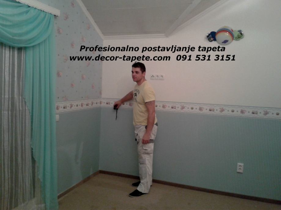 Postavljamo najzahtjevnije tapete visoke skupoće.Kvalitetna postava tapete zahtijeva posebne tehnike postavljanja.Odlika dobro postavljene tapete su nevidljivi spojevi te dobro odabrano ljepilo koje nije isto za sve vrste tapete.Postoje tapete koje se ne smiju prati prilikom postave jer ostavljaju tragove te isto tako i vrijeme otpuštanja je jako bitno.Svaka tapeta ima drugačiji pristup ako je želite kvalitetno postviti.Podloga za tapete mora biti pripremljena prije postave.Za tamnu tapetu podloga bi trebala biti isto u tamnijoj boji odnosno boji kakva je tapeta.Obavezno se moraju poštovati znakovi na uputama za postavu tapeta.Obratite pažnju na tapete sa uzorkom npr 32/64 i sl. jer kvadratura zida nije isto što i dužina banova sa mustrom.Za sve nejasnoće vezano za postavu tapeta slobodno nas kontaktirajte.Tapete mogu biti premazane ljepilom koje se u kontaktu s vodom aktivira.Na tapete radi dodatnog ukrašavanja se još postavljaju i bordure.TAPETE NISU JEFTINE A AKO ŽELITE TAPETE BEZ SPOJA I BEZ MRLJA