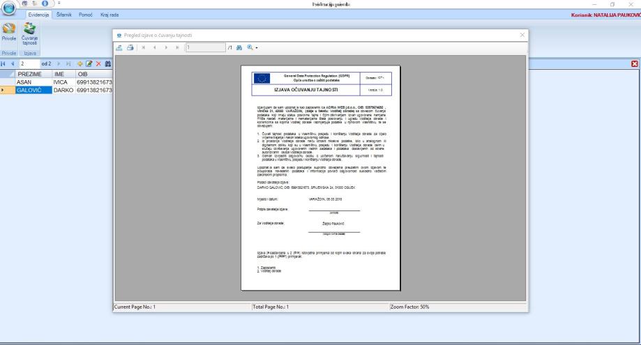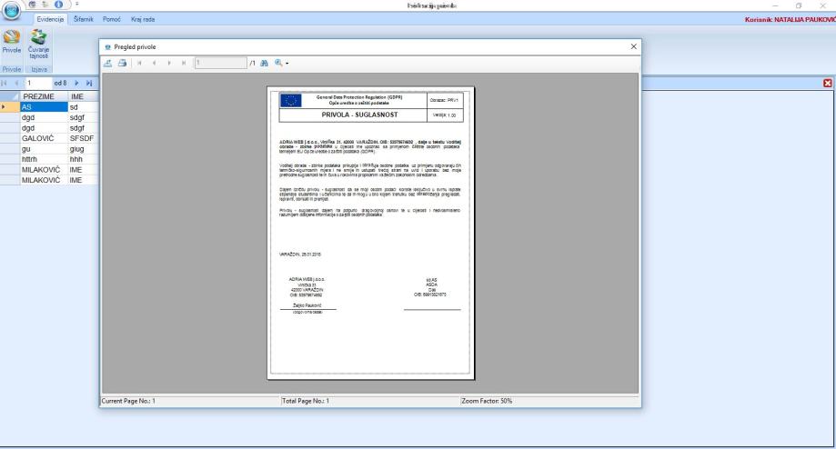 Evidencija privola-suglasnosti (GDPR)