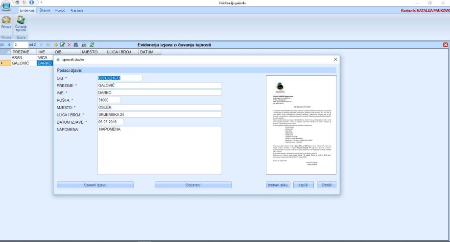 Izjava o povjerljivosti