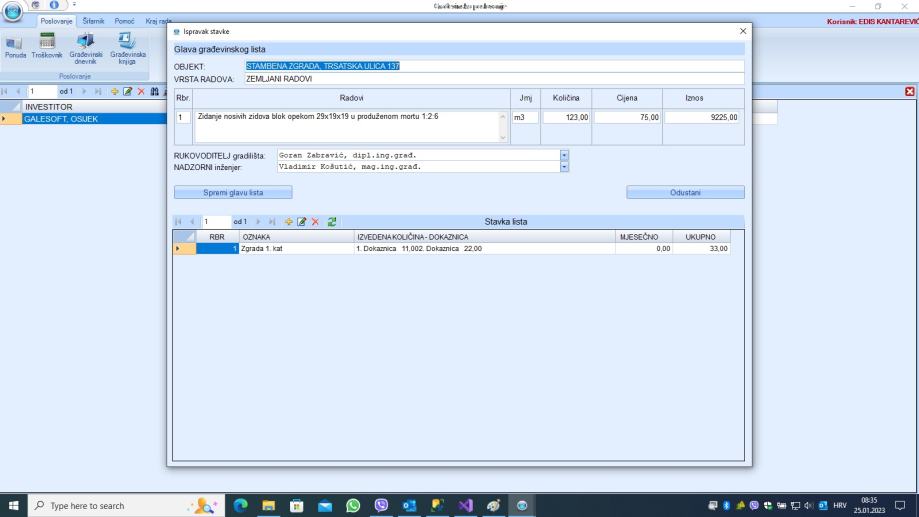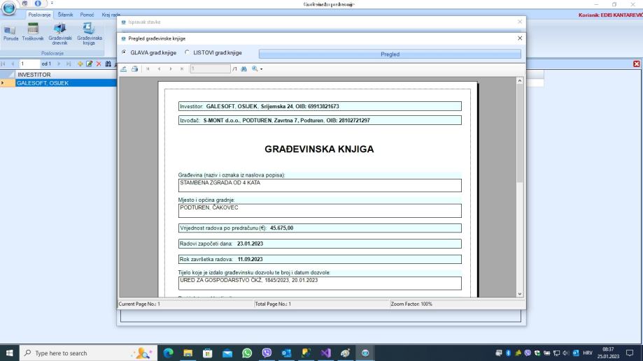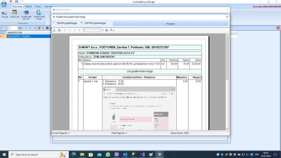 Građevinska knjiga omogućava i prikaz slika različitih formata..