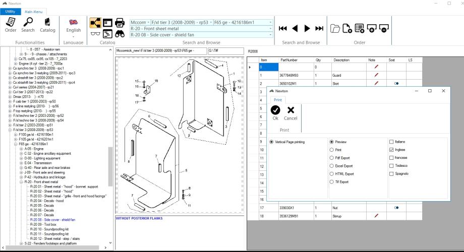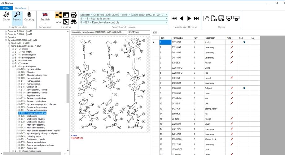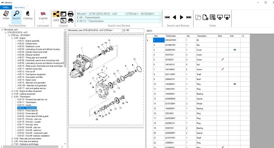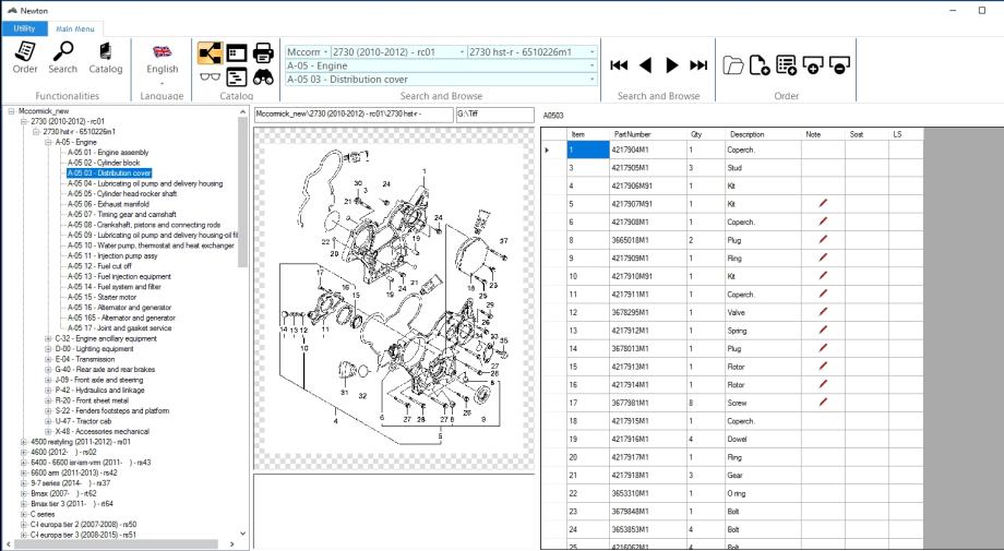 McCormick Newton 05/2015 je detaljan katalog dijelova koji uključuje informacije o dijelovima i priboru, informacije o motoru, sustavima goriva, mjenjaču, stražnjoj osovini i kočionim sustavima, električnim i hidrauličnim sustavima, šasiji, priključcima itd.