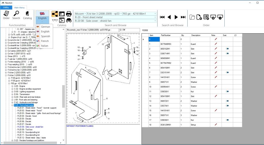 Sučelje kataloga dijelova je vrlo jednostavno i praktično, podržava - njemački, engleski, španjolski, francuski, talijanski.