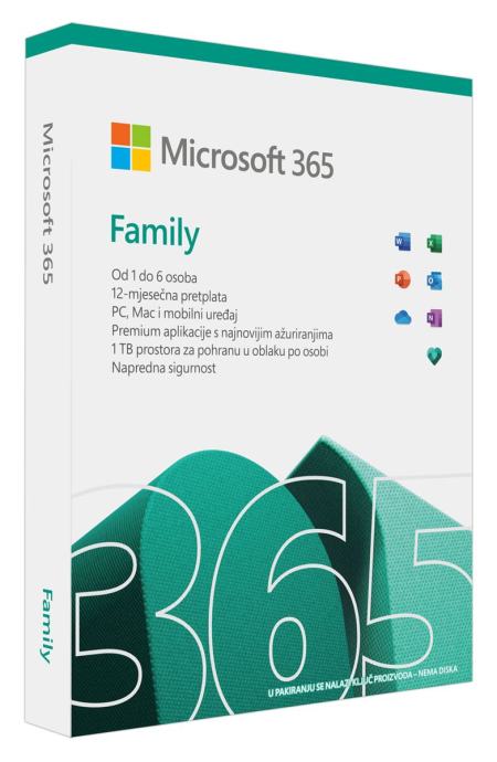 FPP M365 Family ENG Sub 1YR Medialess P8, 6GQ-01556, paket sadrži: Word, Excel, PowerPoint, Outlook, OneNote, OneDrive