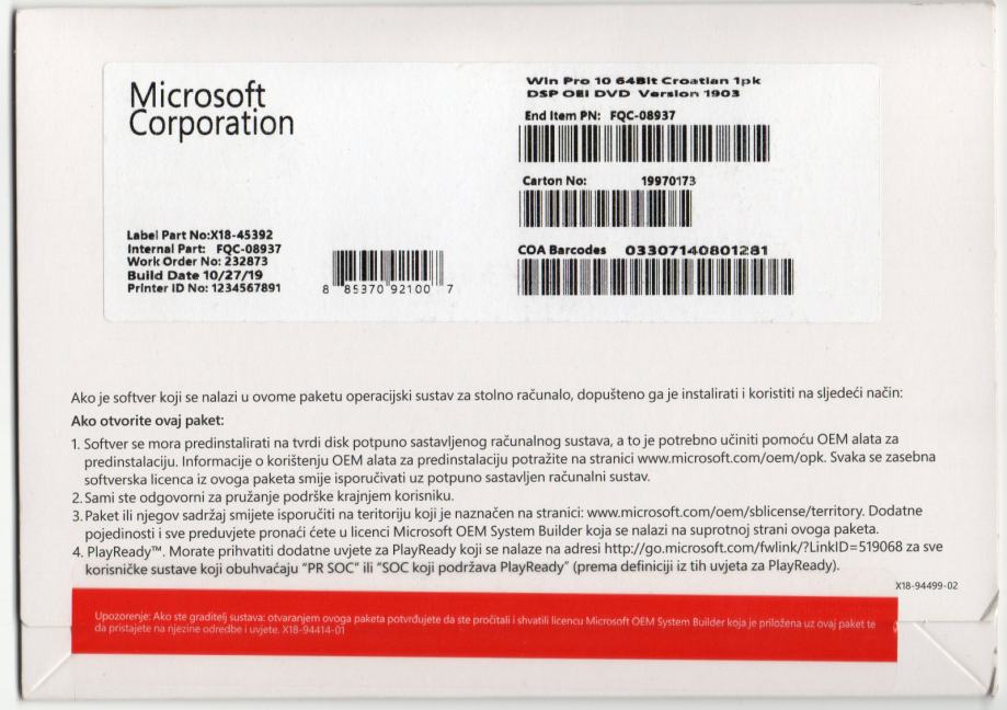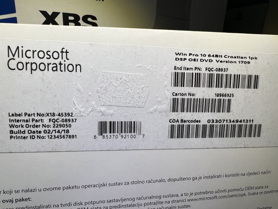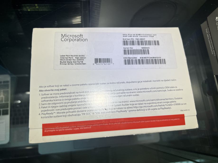 MS Windows 10 Pro DVD Croatian PDV NOVO Original Račun R1 FQC-08937
