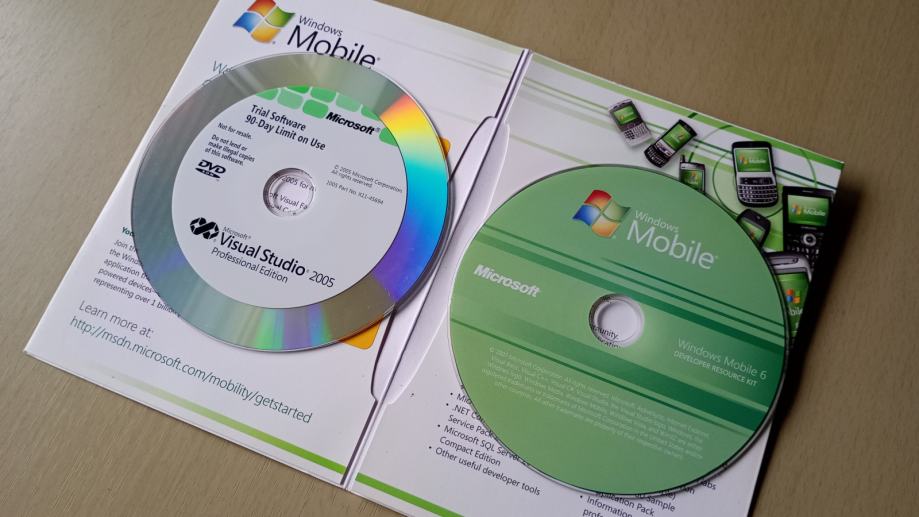 - Microsoft Windows Mobile 6 SDKs, ActiveSync 4.5, .NET Compact 2.0