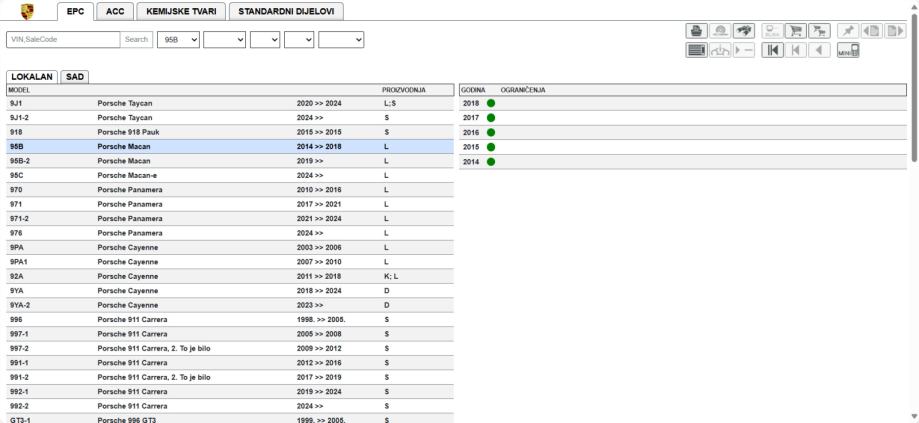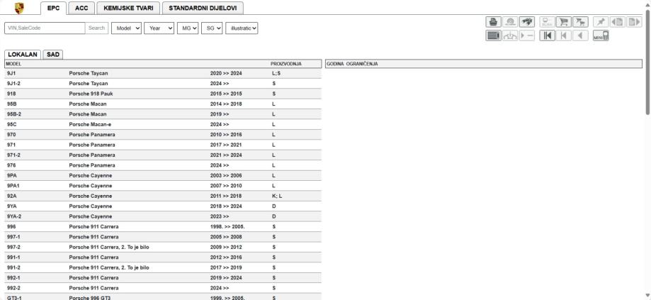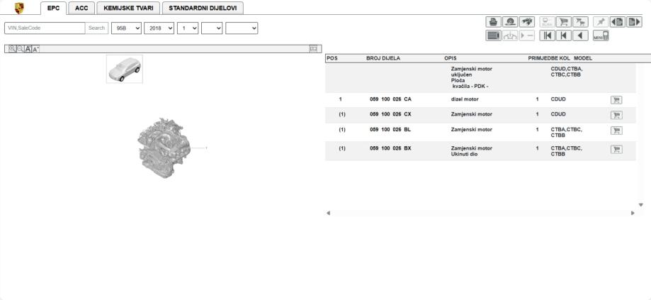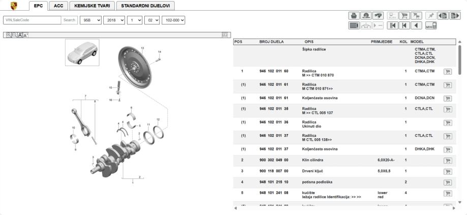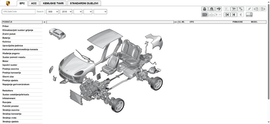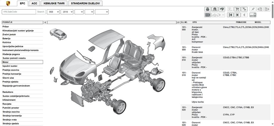 Porsche originalni katalog rezervnih dijelova. Pretraga po VIN Broju vozila i bez vida pretraga kataloških brojeva i po TVN