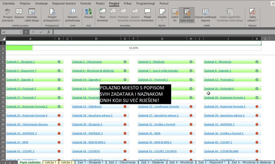 - Zadatke možete rješavati bilo kojim redom, iako se preporuča ići od početka ako do sada niste koristili u većoj mjeri Excel