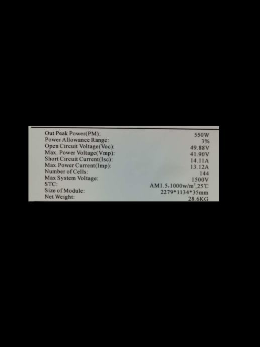 Maksimalni napon sustava: 1500 VDC (IEC)