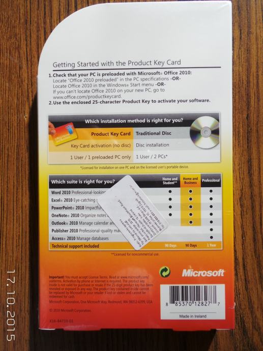 The Product Key Card Microsoft Office 2010, novo, zapakirano.