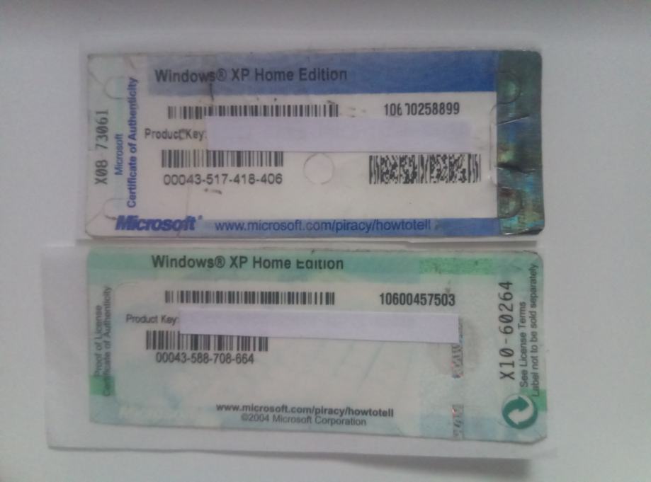 Windows XP Home Edition licenca