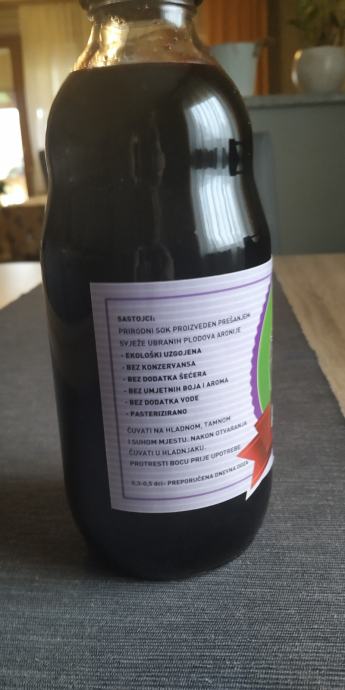 Prodajem maticni sok od aronije,ekoloski uzgojen,hladno presan.Berba 2025.godine.Sok je izuzetne kvalitete i prijatna okusa jer je berba vrsena u punoj zrelosti aronije.