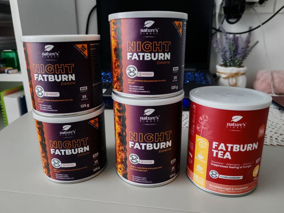 3 nova pakovanja, rokovi do 28.2. 2027. Jedan Fatburn otvoren, rok do 2.6.2026, samo dvije mjerice sam potrosila, ima za jos 23 doze. Fatburn tea na poklon ,nekoliko mjerica potroseno, rok 11.5.2026