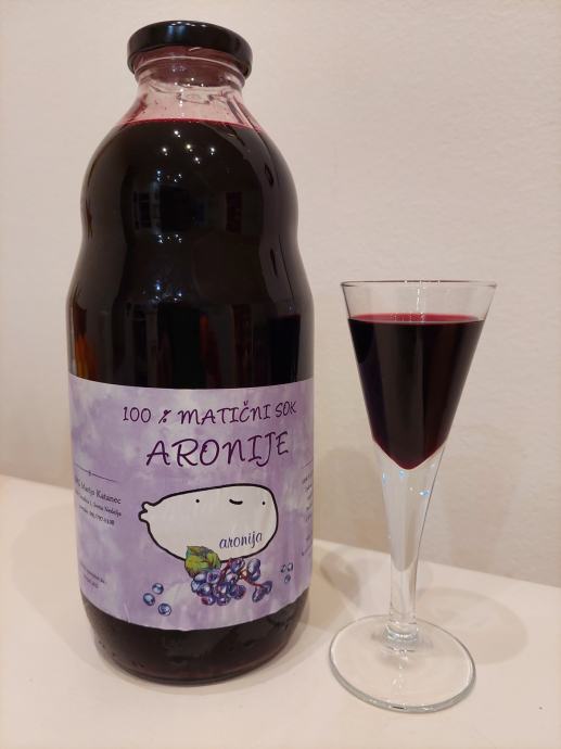 Prodaja 100% matičnoga soka od aronije dobivenoga hladnim prešanjem, pasterizacijom, bez ikakvih dodataka i šećera.