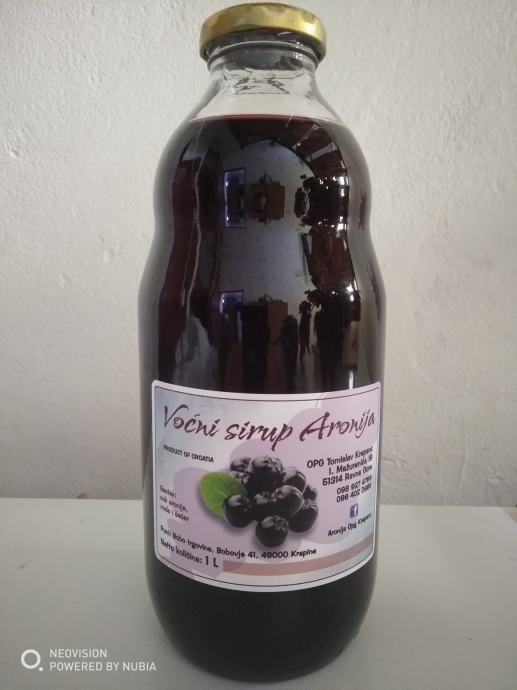 Voćni sirup od aronije je prirodni sok za razrijeđivanje s dodatkom šećera, ali bez konzervansa te je samo pasteriziran.