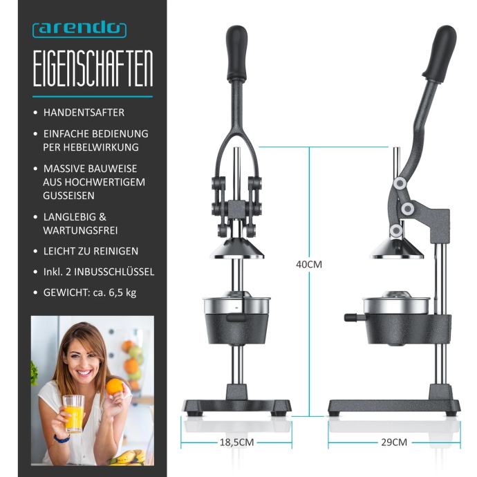 Što može biti okrepljujuće od svježe iscijeđenog voćnog soka? S profesionalnim Arendo ručnim sokovnikom možete stvoriti tropsku vitaminsku oazu! Uživajte u zdravim vitaminima i punom okusu!