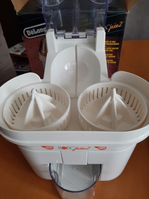 Novi sokovnik sa dvije preše za cijeđenje agruma, sa filterom za odvajanje pulpe, Može se potpuno rastaviti za lakše čišćenje. Pričvrćuje se vakumom za stabilno korištenje. Dimenzije 20 x 21 x 23 cm, Novo, zapakirano, nikad korišteno. Može primopredaja u Zaprešiću ili zapadni dio Zagreba, do centra, a može i dostava, uvečano za poštarinu.