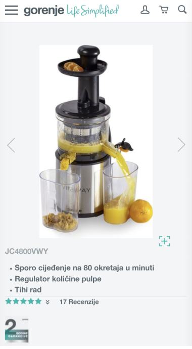 Sokovnik Gorenje JC4800VWY sporo cijeđenje. Samo isproban.