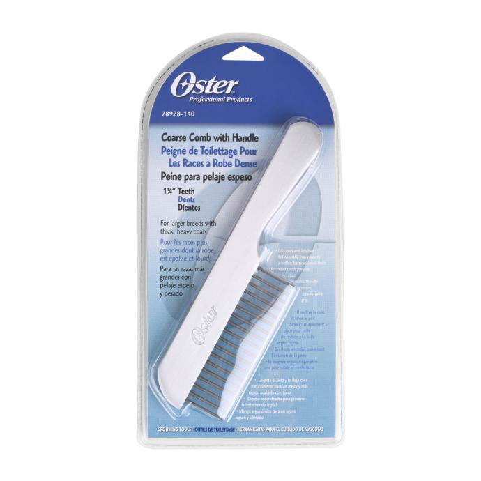 Češalj sa drškom, namijenjen češljanju velikih pasa sa gustom, grubom i dugačkom dlakom. Podiže dlaku koja dobija prirodni pad i na taj način olakšava stiliziranje. Omogućava lakše raščešljavanje zamršene dlake. Ergonomski dizajn drške omogućava lakši rad i sigurno i čvrsto držanje češlja u ruci. Izrađen je od čelika što ga čini dugotrajnim, čvrstim i pogodnim za dezinfekciju. Zaobljeni zupci češlja su tako dizajnirani da je izbjegnuta iritacija kože.