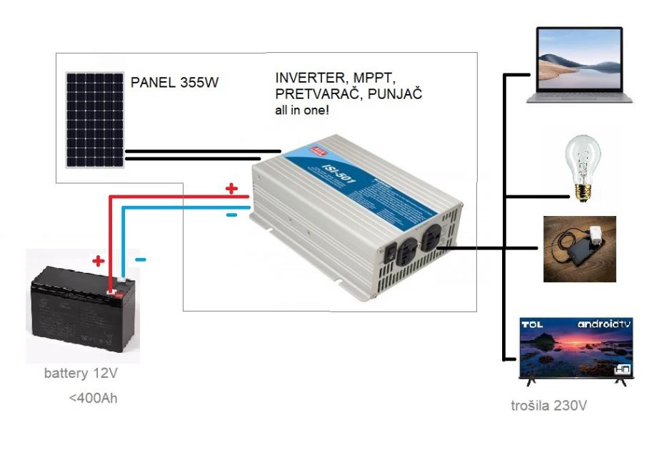 Solarni sustav manje snage, primjenjiv za kućnu uporabu, prijenosnu opremu, brodice, vozila.