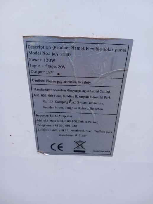 Prodajem fleksibilni solarni panel.130W 70€.Panel je ispravan i u dobrom stanju