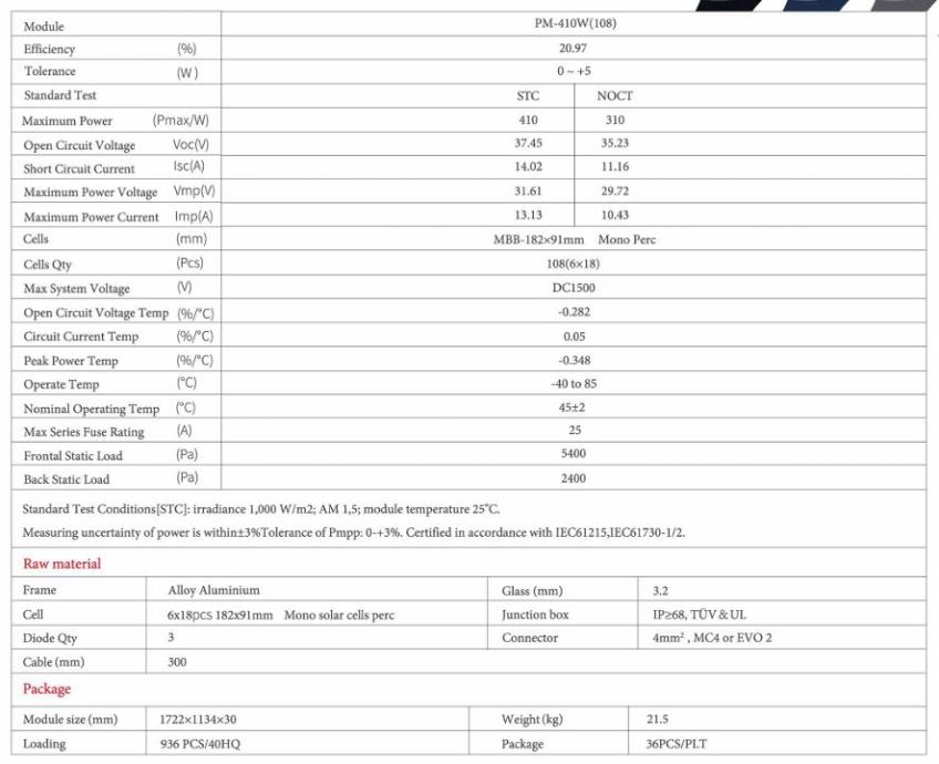 Nudimo kvalitetan 410W monokristalni solarni panel potpuno crne boje, idealan za moderne krovne instalacije i sustave za obnovljivu energiju. Ovaj solarni panel donosi izvrsne performanse, pouzdanost i vrhunski dizajn za estetski ugodan izgled vašeg krova.