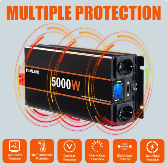 Inverter napona 12V na 220V 5kW sa daljinskim upravljačem Čisti Sinus