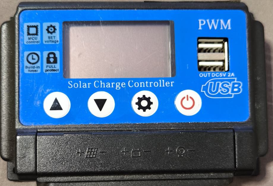 Ovaj uređaj je PWM solarni regulator punjenja, uobičajena komponenta koja upravlja energijom iz solarnih panela prema akumulatoru kako bi se spriječilo prepunjavanje.