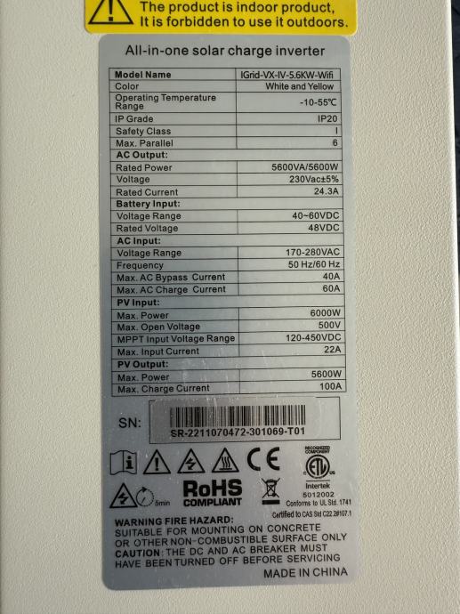 Inverter / Solarni sustav – MPPT 5600 W, WiFi, paralelno do 9 jedinica