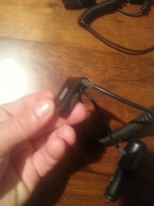 Auto punjač za Ericssonove mobitele koji može spojiti i puniti dva mobitela..