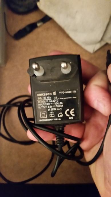Punjač Ericsson mobitela sa uskim priključkom.