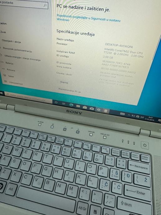 Laptop Sony Vaio ispravan sa windowsima 10,2gb ram,hard disk 120gb