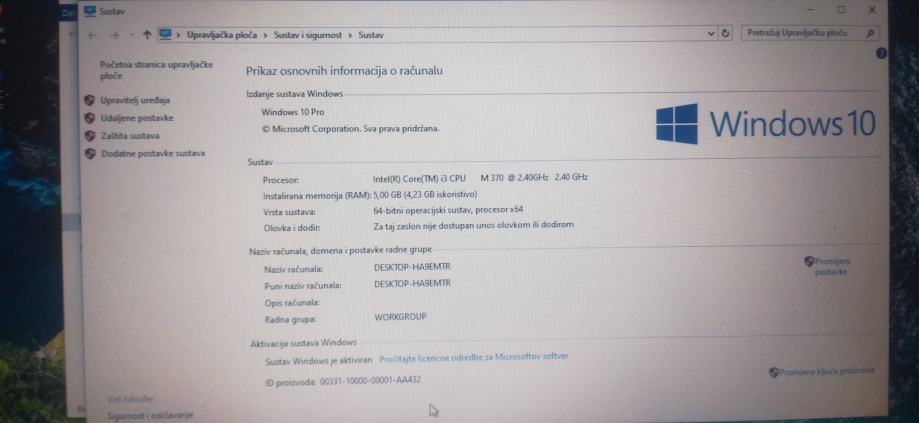 Operativni sustav - Windows 1o pro 64-bit (aktiviran)