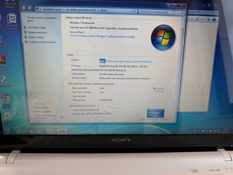 Prodajem laptop Sony Vaio u ispravnom stanju, baterija izdrzi 2-3h, originalni punjac.