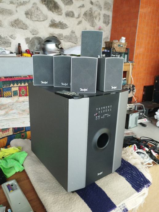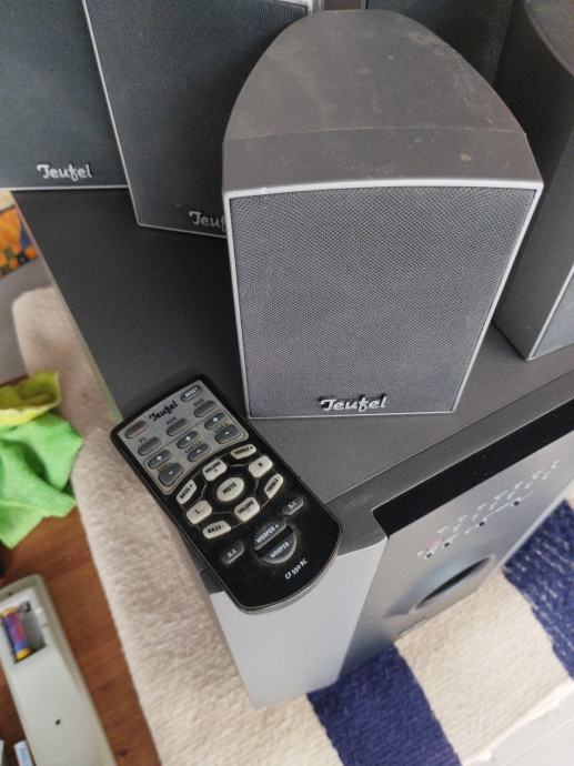 Prodajem rabljeni Teufel CF 550/6 SW sustav zvučnika. Radi se o konfiguraciji 5.1 koja uključuje subwoofer s ugrađenim pojačalom, pet satelitskih zvučnika te daljinski upravljač.